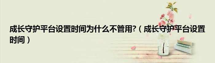 大家好,小晋来为大家解答以下问题,关于成长守护平台设置时间为什么不管用?,成长守护平台设置时间很多人还不知道,今天让我们一起来看看吧!
