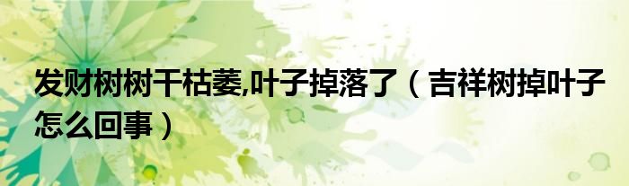 大家好,小晋来为大家解答以下问题,关于发财树树干枯萎,叶子掉落了,吉祥树掉叶子怎么回事很多人还不知道,今天让我们一起来看看吧!
