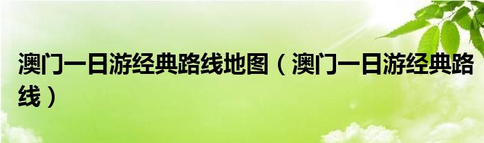 关于澳门一日游经典路线地图,澳门一日游经典路线这个很多人还不知道,今天菲菲来为大家解答以上的问题,现在让我们一起来看看吧!