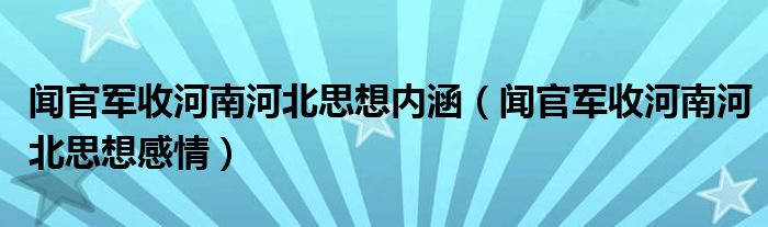 关于闻官军收河南河北思想内涵,闻官军收河南河北思想感情这个很多人还不知道,今天菲菲来为大家解答以上的问题,现在让我们一起来看看吧!