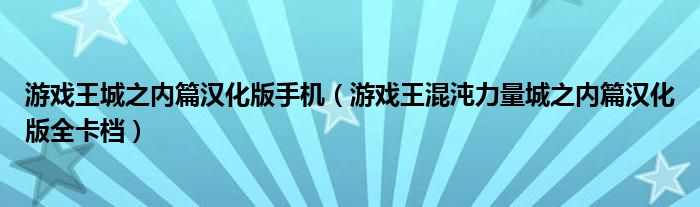 关于游戏王城之内篇汉化版手机,游戏王混沌力量城之内篇汉化版全卡档这个很多人还不知道,今天菲菲来为大家解答以上的问题,现在让我们一起来看看吧!