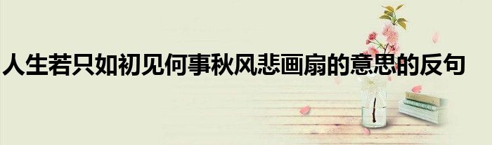 关于人生若只如初见何事秋风悲画扇的意思的反句这个很多人还不知道,今天菲菲来为大家解答以上的问题,现在让我们一起来看看吧!