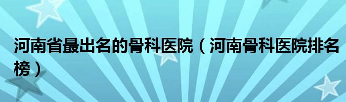 关于河南省最出名的骨科医院,河南骨科医院排名榜这个很多人还不知道,今天菲菲来为大家解答以上的问题,现在让我们一起来看看吧!