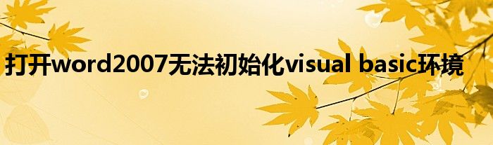关于打开word2007无法初始化visual basic环境这个很多人还不知道,今天菲菲来为大家解答以上的问题,现在让我们一起来看看吧!