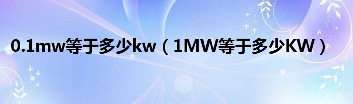 关于0.1mw等于多少kw,1MW等于多少KW这个很多人还不知道,今天菲菲来为大家解答以上的问题,现在让我们一起来看看吧!