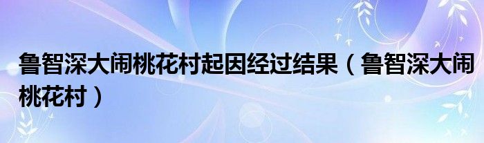 关于鲁智深大闹桃花村起因经过结果,鲁智深大闹桃花村这个很多人还不知道,今天菲菲来为大家解答以上的问题,现在让我们一起来看看吧!