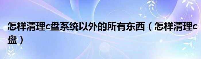 大家好,小飞来为大家解答以上问题,怎样清理c盘系统以外的所有东西,怎样清理c盘很多人还不知道,现在让我们一起来看看吧!
