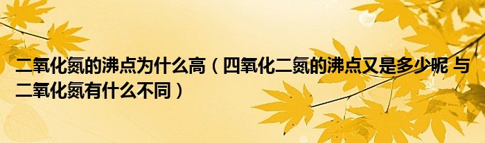 关于二氧化氮的沸点为什么高,四氧化二氮的沸点又是多少呢 与二氧化氮有什么不同这个很多人还不知道,今天菲菲来为大家解答以上的问题,现在让我们一起来看看吧!