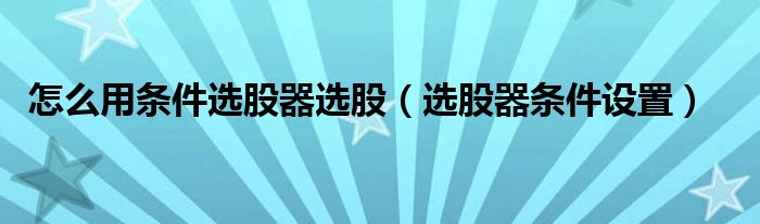关于怎么用条件选股器选股,选股器条件设置这个很多人还不知道,今天菲菲来为大家解答以上的问题,现在让我们一起来看看吧!