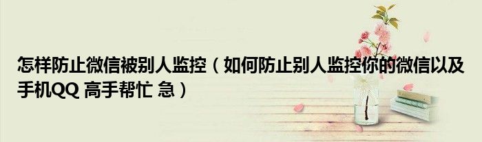 怎样防止微信被别人监控(如何防止别人监控你的微信以及手机QQ 高手帮忙 急)