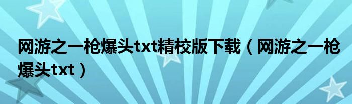 网游之一枪爆头txt精校版下载(网游之一枪爆头txt)