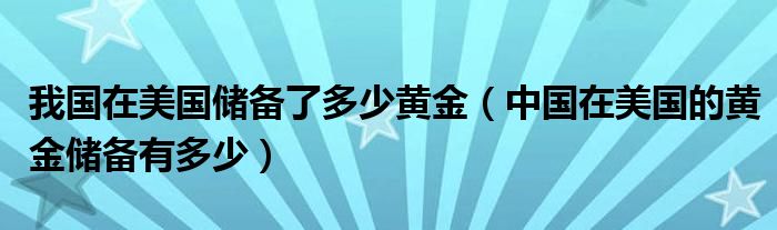 我国在美国储备了多少黄金(中国在美国的黄金储备有多少)