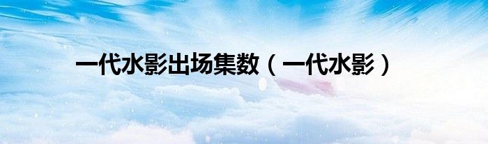 一代水影出场集数(一代水影)