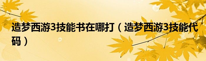 造梦西游3技能书在哪打,造梦西游3技能代码这个很多人还不知道,小飞来为大家解答以上的问题。现在让我们一起来看看吧!