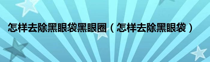 怎样去除黑眼袋黑眼圈,怎样去除黑眼袋这个很多人还不知道,小飞来为大家解答以上的问题。现在让我们一起来看看吧!