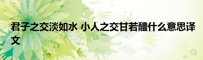 关于君子之交淡如水 小人之交甘若醴什么意思译文这个很多人还不知道,今天菲菲来为大家解答以上的问题,现在让我们一起来看看吧!