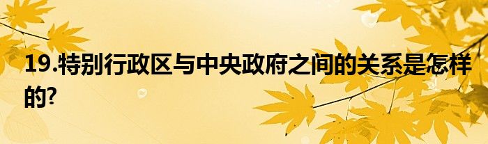 关于19.特别行政区与中央政府之间的关系是怎样的?这个很多人还不知道,今天菲菲来为大家解答以上的问题,现在让我们一起来看看吧!