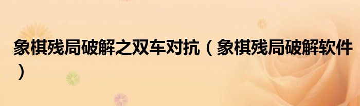 象棋残局破解之双车对抗,象棋残局破解软件很多人还不知道,乐乐来为大家解答以上问题,现在让我们一起来看看吧!
