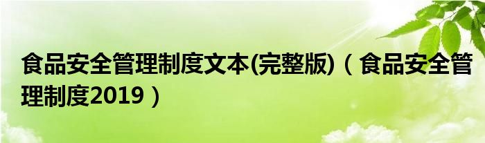 食品安全管理制度文本(完整版)(食品安全管理制度2019)