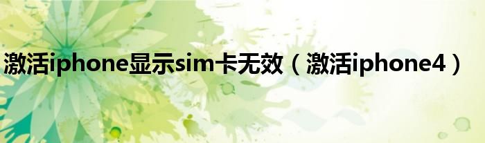 大家好,小飞来为大家解答以上问题,激活iphone显示sim卡无效,激活iphone4很多人还不知道,现在让我们一起来看看吧!