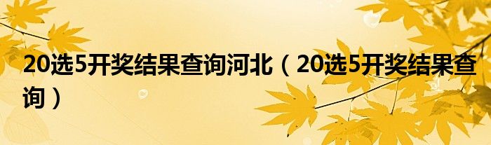 20选5开奖结果查询河北,20选5开奖结果查询这个很多人还不知道,小飞来为大家解答以上的问题。现在让我们一起来看看吧!