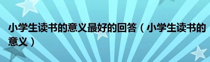 关于小学生读书的意义最好的回答,小学生读书的意义这个很多人还不知道,今天菲菲来为大家解答以上的问题,现在让我们一起来看看吧!