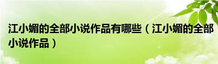 关于江小媚的全部小说作品有哪些,江小媚的全部小说作品这个很多人还不知道,今天菲菲来为大家解答以上的问题,现在让我们一起来看看吧!