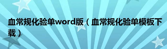关于血常规化验单word版,血常规化验单模板下载这个很多人还不知道,今天菲菲来为大家解答以上的问题,现在让我们一起来看看吧!