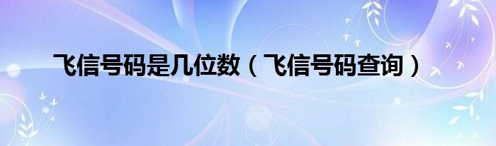 飞信号码是几位数,飞信号码查询这个很多人还不知道,小飞来为大家解答以上的问题。现在让我们一起来看看吧!