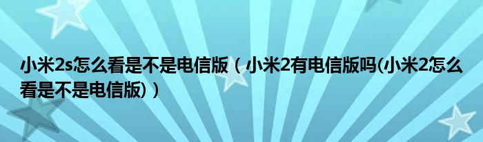 大家好,小常来为大家解答以上问题。小米2s怎么看是不是电信版,小米2有电信版吗(小米2怎么看是不是电信版)很多人还不知道,现在让我们一起来看看吧!