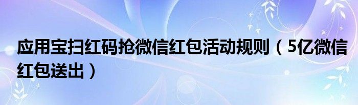 大家好,今天小悦来为大家解答以上问题。应用宝扫红码抢微信红包活动规则,5亿微信红包送出很多人还不知道,现在让我们一起来看看吧!