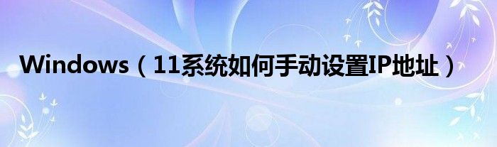 大家好,今天小悦来为大家解答以上问题。Windows,11系统如何手动设置IP地址很多人还不知道,现在让我们一起来看看吧!