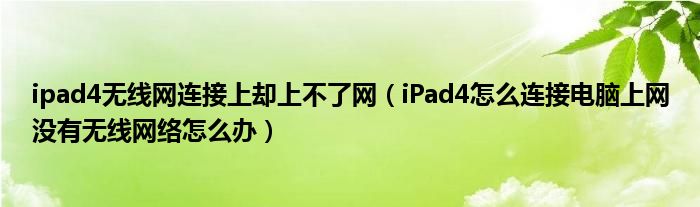 大家好,今天小悦来为大家解答以上问题。ipad4无线网连接上却上不了网,iPad4怎么连接电脑上网没有无线网络怎么办很多人还不知道,现在让我们一起来看看吧!