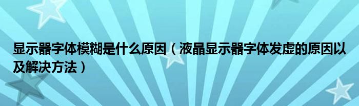 大家好,今天小悦来为大家解答以上问题。显示器字体模糊是什么原因,液晶显示器字体发虚的原因以及解决方法很多人还不知道,现在让我们一起来看看吧!