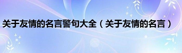 关于关于友情的名言警句大全,关于友情的名言这个很多人还不知道,今天菲菲来为大家解答以上的问题,现在让我们一起来看看吧!