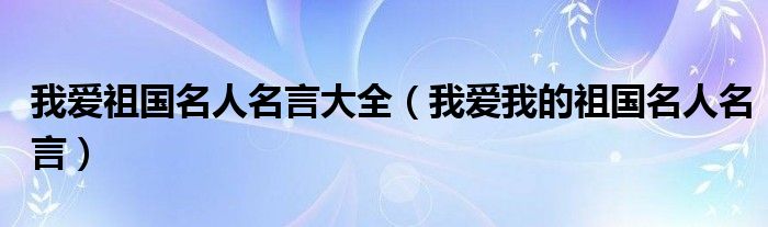 关于我爱祖国名人名言大全,我爱我的祖国名人名言这个很多人还不知道,今天菲菲来为大家解答以上的问题,现在让我们一起来看看吧!