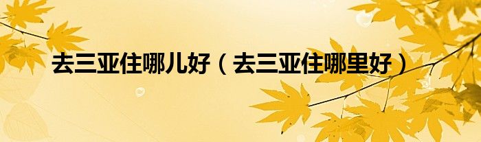 关于去三亚住哪儿好,去三亚住哪里好这个很多人还不知道,今天菲菲来为大家解答以上的问题,现在让我们一起来看看吧!
