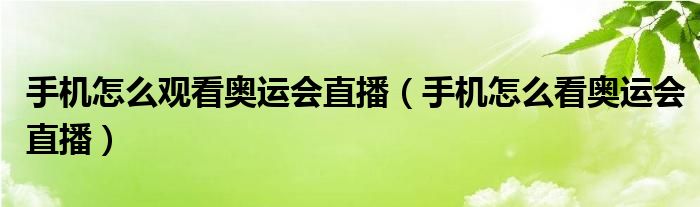 大家好,雨雨来为大家解答以上问题,手机怎么观看奥运会直播,手机怎么看奥运会直播很多人还不知道,现在让我们一起来看看吧!