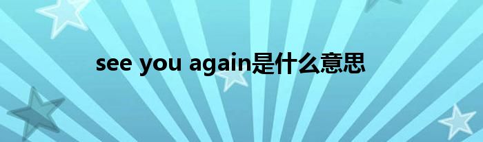 关于see you again是什么意思这个很多人还不知道,今天菲菲来为大家解答以上的问题,现在让我们一起来看看吧!