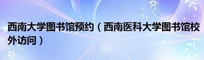 西南大学图书馆预约(西南医科大学图书馆校外访问)