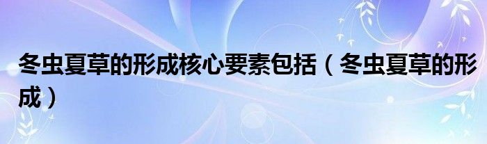 关于冬虫夏草的形成核心要素包括,冬虫夏草的形成这个很多人还不知道,今天菲菲来为大家解答以上的问题,现在让我们一起来看看吧!