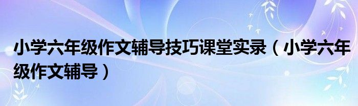 关于小学六年级作文辅导技巧课堂实录,小学六年级作文辅导这个很多人还不知道,今天菲菲来为大家解答以上的问题,现在让我们一起来看看吧!