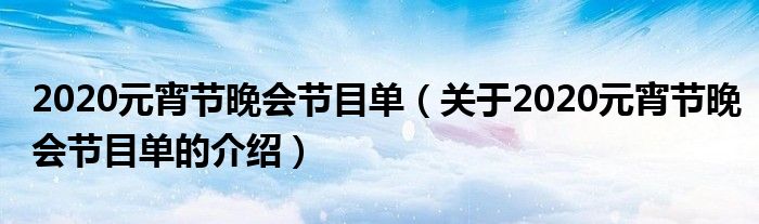 大家好,今天小乐来为大家解答以上的问题。2020元宵节晚会节目单,关于2020元宵节晚会节目单的介绍很多人还不知道,现在让我们一起来看看吧!