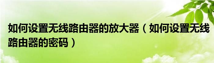 大家好,雨雨来为大家解答以上问题,如何设置无线路由器的放大器,如何设置无线路由器的密码很多人还不知道,现在让我们一起来看看吧!