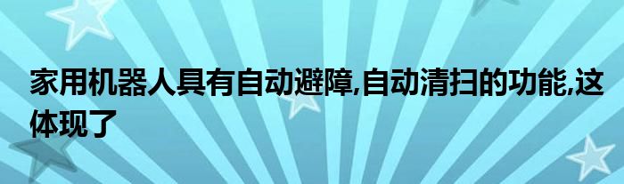 关于家用机器人具有自动避障,自动清扫的功能,这体现了这个很多人还不知道,今天菲菲来为大家解答以上的问题,现在让我们一起来看看吧!