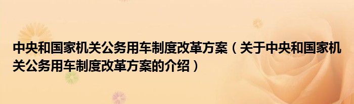 中央和国家机关公务用车制度改革方案(关于中央和国家机关公务用车制度改革方案的介绍)