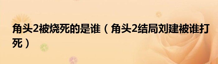 大家好,小晋来为大家解答以下问题,关于角头2被烧死的是谁,角头2结局刘建被谁打死很多人还不知道,今天让我们一起来看看吧!