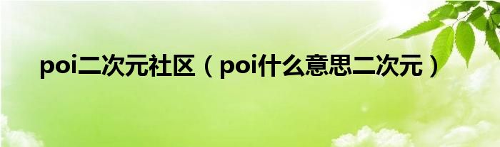 poi二次元社区(poi什么意思二次元)