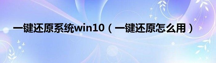 大家好,雨雨来为大家解答以上问题,一键还原系统win10,一键还原怎么用很多人还不知道,现在让我们一起来看看吧!