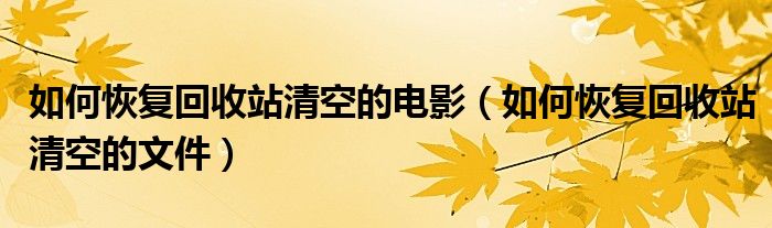 大家好,雨雨来为大家解答以上问题,如何恢复回收站清空的电影,如何恢复回收站清空的文件很多人还不知道,现在让我们一起来看看吧!